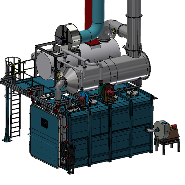 Eine thermische Nachverbrennung nach dem Pyrolyseprozess ist fester Bestandteil einer thermischen Reinigungsanlage. Auslegung und Fertigung erfolgt nach Energieinhalt und Menge der zu reinigenden Pyrolysegase. Wir nutzen hier konsequent die Energie der Pyrolysegase zur Reduzierung des Primärenergiebedarfs.